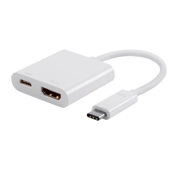 Monoprice USB-C to HDMI and USB-C (F) Dual Port Adapter, Compatible With USB-C Equipped Laptops, Such As The Apple Macbook And Google Chromebook
