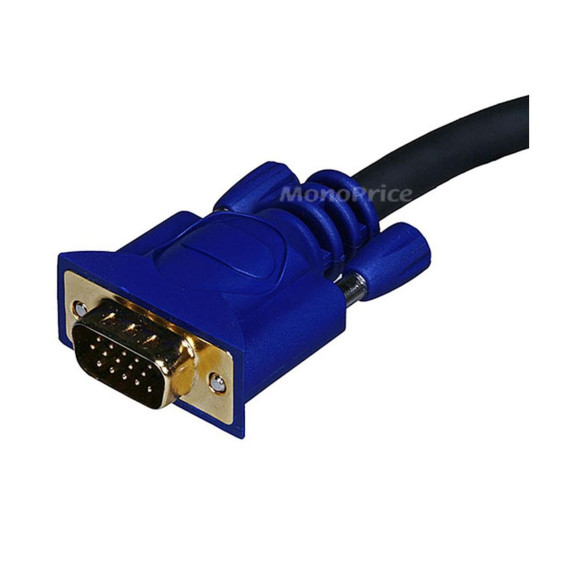 This cable has an DE15 (HD15) VGA/SVGA connector on one end and three, color-coded RCA connectors on the other end. The connectors and pins are gold plated for smooth, corrosion-free connections.