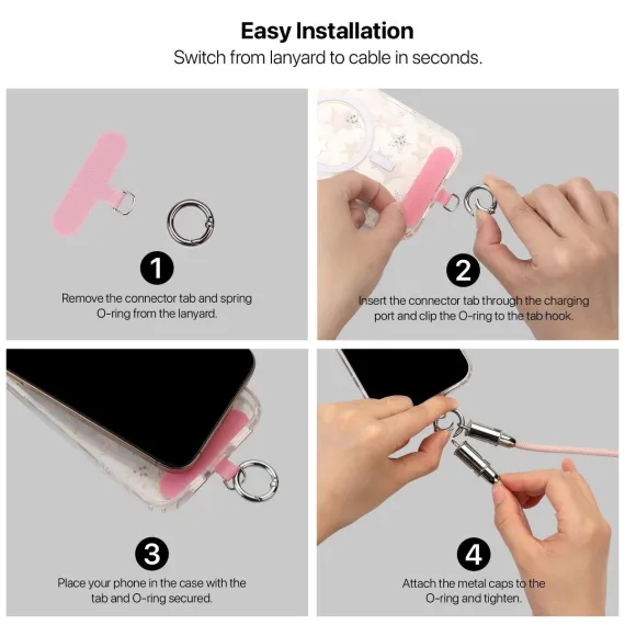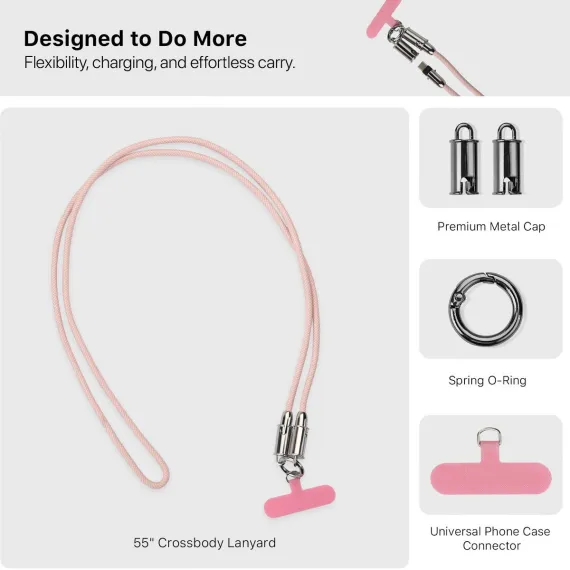 MyBat Tether Crossbody Strap + USB-C Charging Cable(L=4.2 FT) - Pink Pink