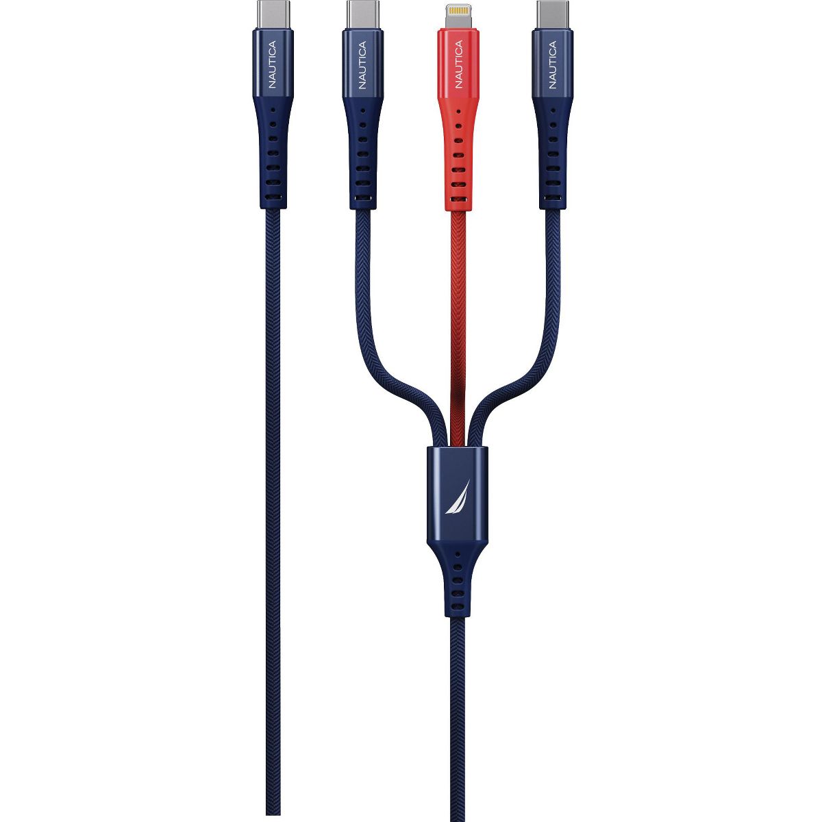 Why settle for less when you can do it all with the Nautica CB630? This 3-in-1 USB-C to Lightning + Type-C + Type-C cable lets you charge three devices at the same time. Yup, you heard that right—charge your phone, tablet, laptop, or wireless earbuds all at once. Whether you're working, playing, or streaming, the CB630 has your back, making sure all your essential devices stay powered up and ready to roll. Talk about convenience, right?