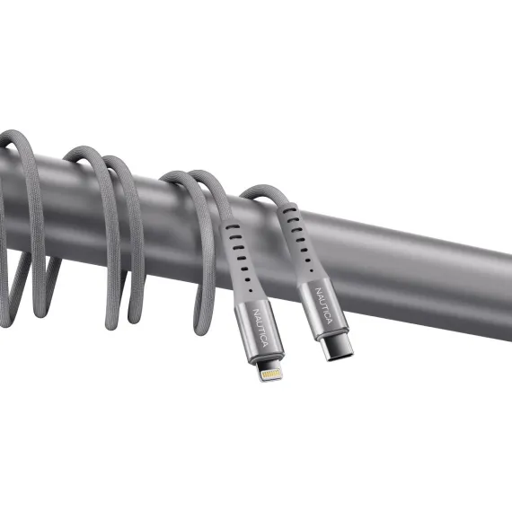 The Nautica CB305 USB-C to Lightning cable is designed to elevate your Apple device charging and syncing experience. MFi certified for flawless compatibility, it ensures secure, fast, and reliable performance across all Lightning-equipped devices. With a premium braided fabric cover for durability and a sleek design, the CB305 resists tangling and fraying, making it a long-lasting essential for tech-savvy users. Reinforced metal connectors and real copper wiring guarantee efficiency, safety, and longevity. Available in 4 and 10-foot lengths, this cable adapts to your needs at home, work, or on the go. The Nautica CB305 is the perfect blend of fashion and function, offering a premium charging and data transfer experience for Apple users.