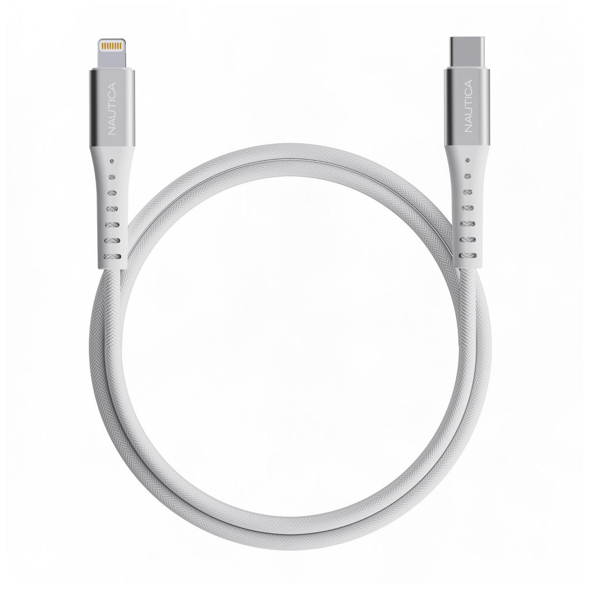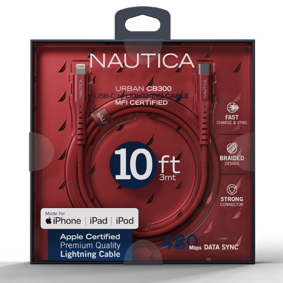 The Nautica CB305 USB-C to Lightning cable is designed to elevate your Apple device charging and syncing experience. MFi certified for flawless compatibility, it ensures secure, fast, and reliable performance across all Lightning-equipped devices. With a premium braided fabric cover for durability and a sleek design, the CB305 resists tangling and fraying, making it a long-lasting essential for tech-savvy users. Reinforced metal connectors and real copper wiring guarantee efficiency, safety, and longevity. Available in 4 and 10-foot lengths, this cable adapts to your needs at home, work, or on the go. The Nautica CB305 is the perfect blend of fashion and function, offering a premium charging and data transfer experience for Apple users.