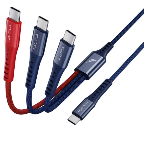 The Nautica CB600 is a powerful 3-in-1 charging cable designed for convenience and performance. With 3 USB-C outputs, it lets you charge three devices at once, including phones, tablets, and laptops. Featuring 60W Power Delivery and 480Mbps data transfer speed, it’s built for fast charging and seamless syncing. Its premium woven fabric and sleek aluminum design ensure long-lasting durability and a modern look, all in one cable.