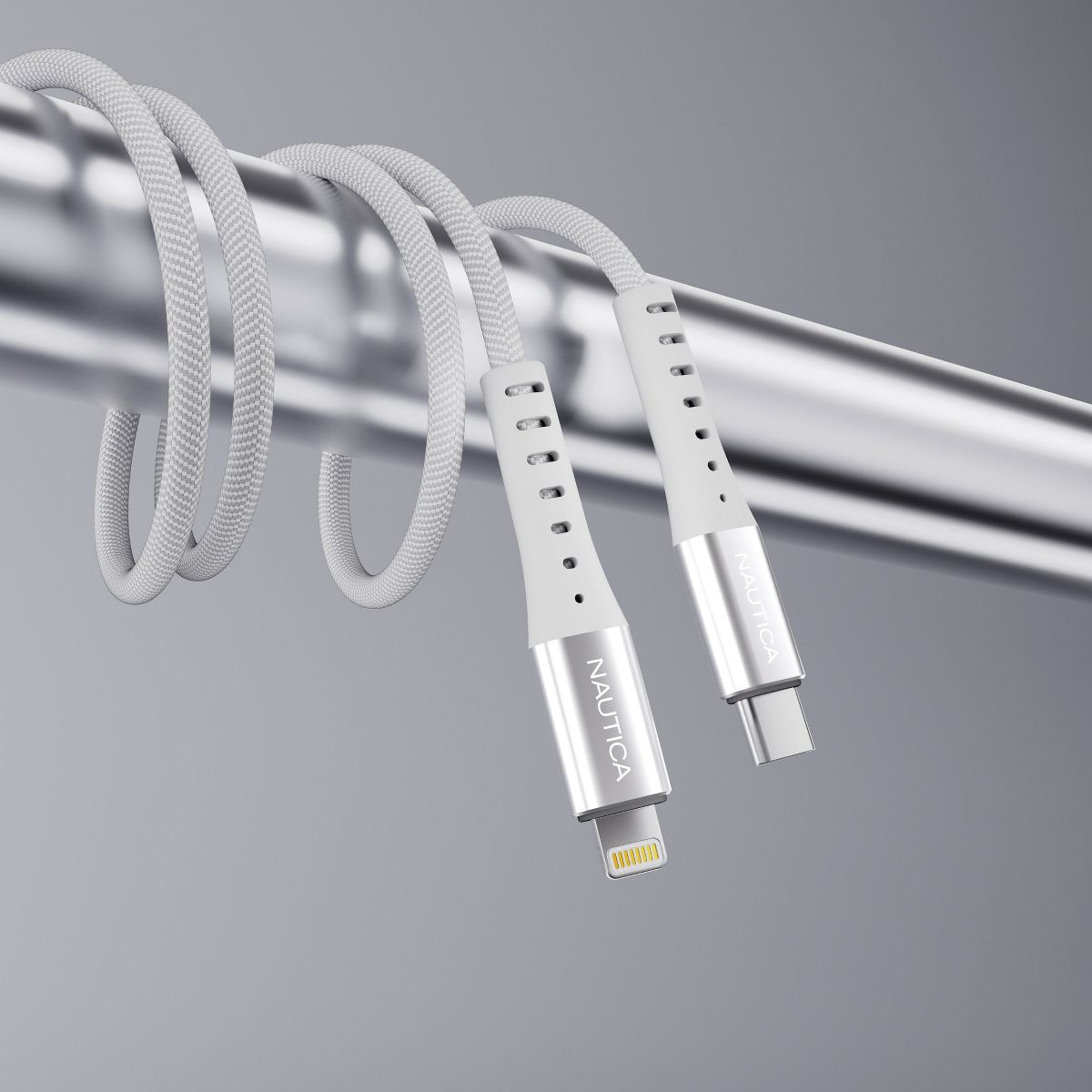 The Nautica CB310 is a USB-C to Lightning cable that combines style, functionality, and innovation. Featuring a strategically placed LED light on the connector tip, it offers the ultimate convenience for charging in the dark. Whether you need to find your cable in a dim room or use it as a mini flashlight, the CB310 makes your nighttime charging experience effortless. With a durable braided fabric cover, fast charging capabilities, and reinforced connectors, this cable is perfect for those who need reliability and style in one. With its clever design, fast charging, and premium build, the CB310 is the ultimate cable for those who value both style and performance, especially for nighttime convenience!