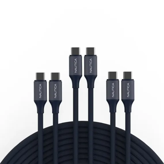 The Nautica Turan CB530 USB C to USB C Cable 60W Fast Charging 3 Pack is designed for powerful charging and reliable data transfer across all your USB C devices. Each cable supports up to 60W Power Delivery with PD input and output, making it suitable for smartphones, tablets and compatible laptops. This set includes three 4 foot braided USB C to USB C cables built with premium materials and reinforced connectors for long lasting durability. The braided fabric exterior helps resist daily wear, bending and tangling while maintaining consistent performance. In addition to fast charging, the cables support data transfer speeds up to 480 Mbps, allowing efficient syncing between devices. Compatible with iPhone 17, iPhone 16, iPhone 15 and iPhone 14 series, Samsung Galaxy S25 and S24 series, Google Pixel devices, iPad Pro, iPad Air, MacBook Air, MacBook Pro, Chromebooks and other USB C enabled laptops and tablets. The Nautica Turan CB530 cable bundle delivers a balanced combination of speed, durability and everyday convenience for all your charging needs.