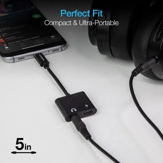 Naztech® USB-C® to 3.5 mm Audio Plus Charge Adapter in Black