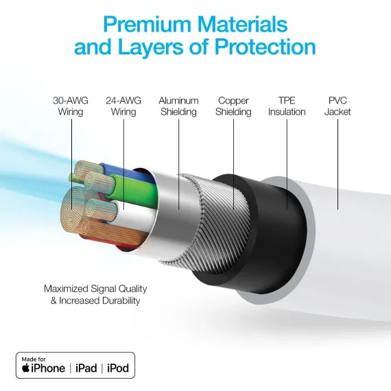 Naztech USB to MFi Lightning Rounded Cable | 12' | White