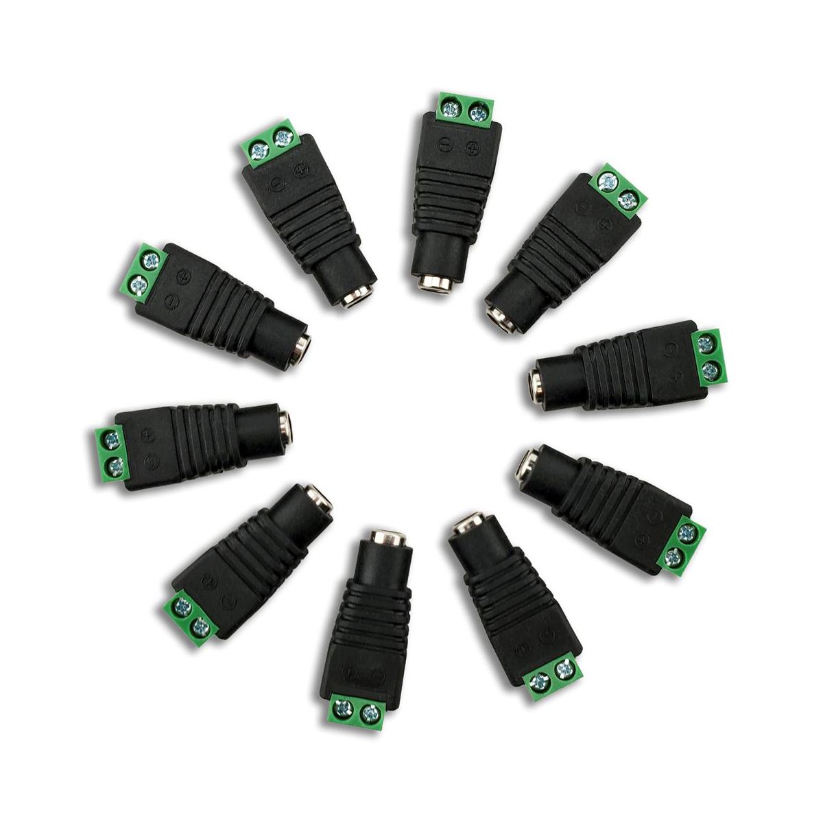 SatelliteSale proudly presents a pack of 10 pairs of Male&Female 12V DC Power Connectors 5.5mm Jack Adapter by SatelliteSale. Meet the reliable fitting with a simple and durable casing. If you need to connect a battery pack or wired power supply to a board that has a DC jack - this adapter will come in very handy! There is a DC connector on one end, and a screw terminal block on the other. Our Premium Quality 12V DC Power Connectors are compatible with 5.5mm barrel jacks that have a 2.1mm center pole, and support power for a wide range of equipment. It can be used in residential and commercial applications for 5V, 12V, 24V, DC Power Supply CCTV Camera Cable, DVR Security System, Led Strip Extension, Video Balun Security Tailgate Camera, DIY Board. These adapters make any installation safe and reliable, while all you need for setting up is a screwdriver to create a solid connection between wired components. The PVC-protected casing is produced for increased durability with stainless screws and sturdy metal connectors. A compact, pocket-size accessory that will come in handy for every technician or DIY homeowner. Every connector we sell is covered with a lifetime warranty to deliver a positive experience to our clients. What is in the box: