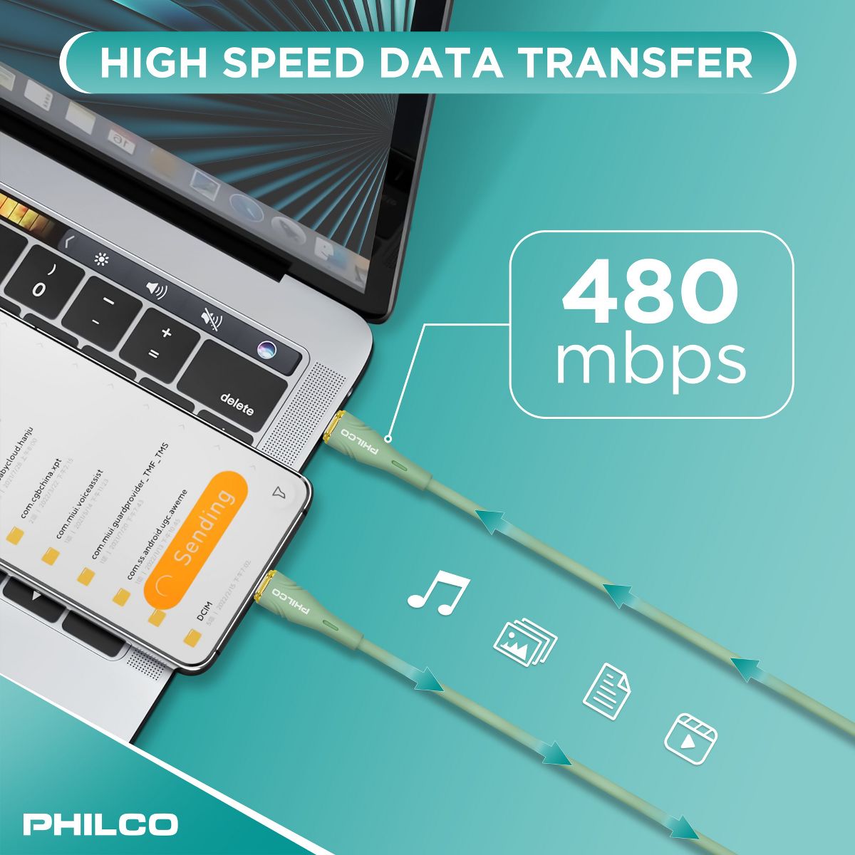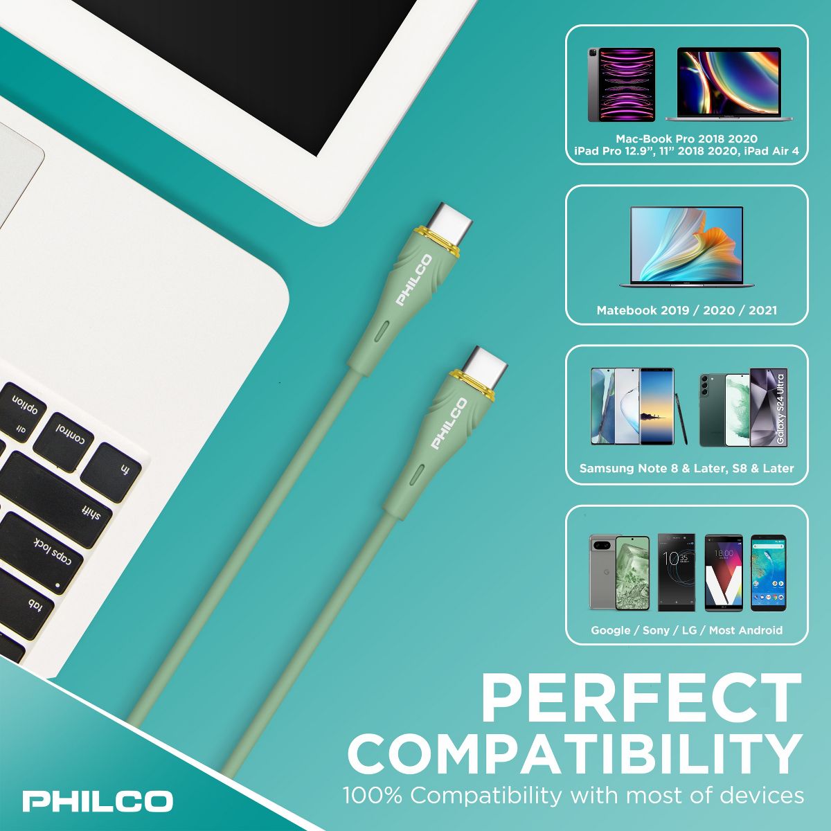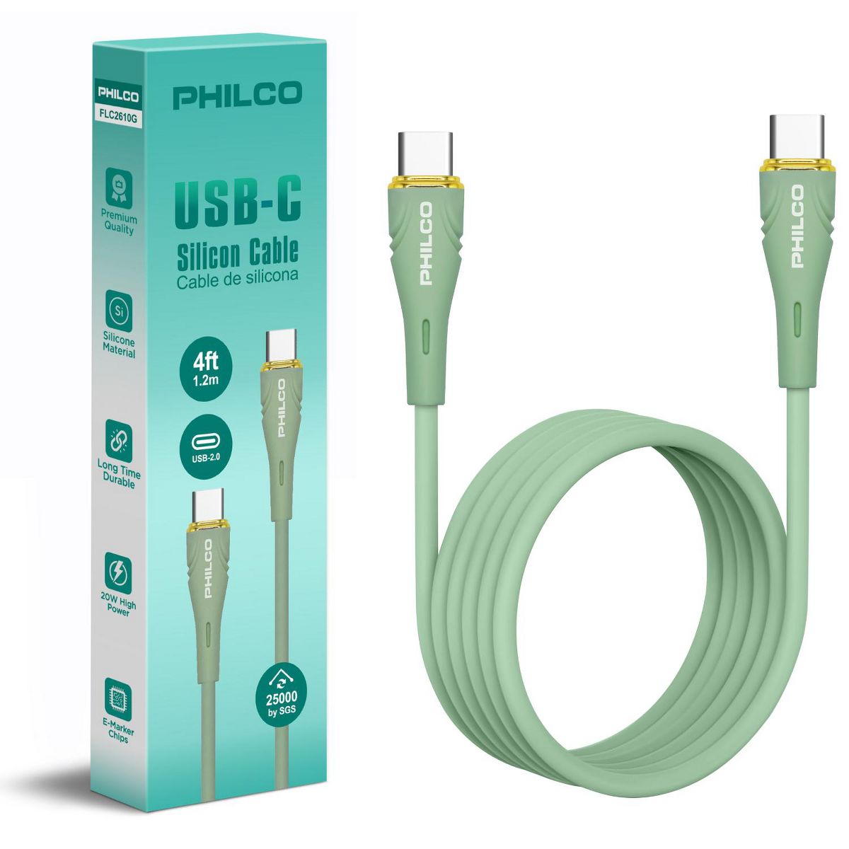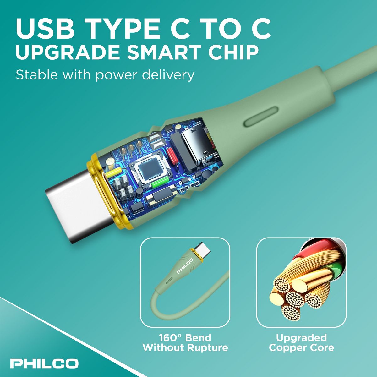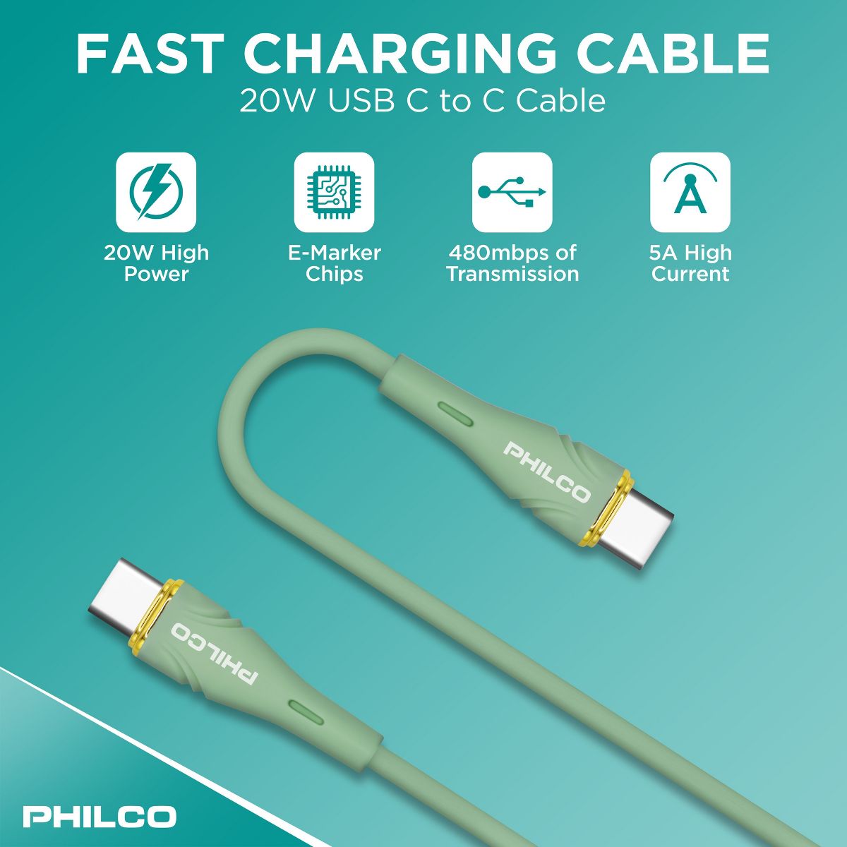 PHILCO USB C to C Cable, 4Ft Length, 20W Fast Charging, High-Speed Data Transfer, Durable and Tangle-Free Black