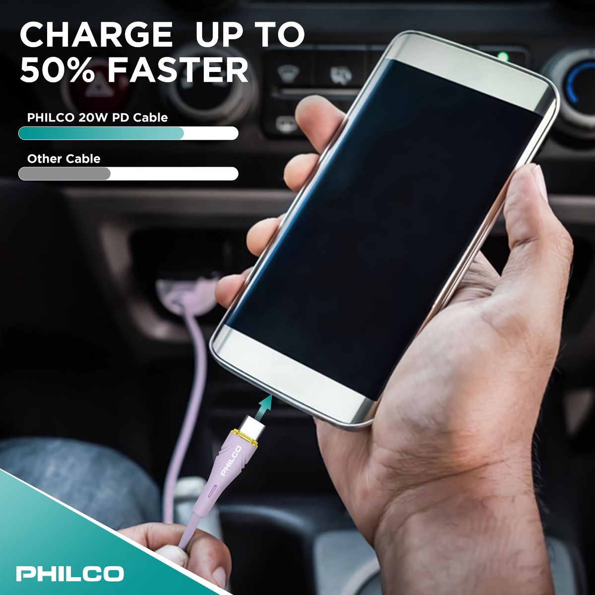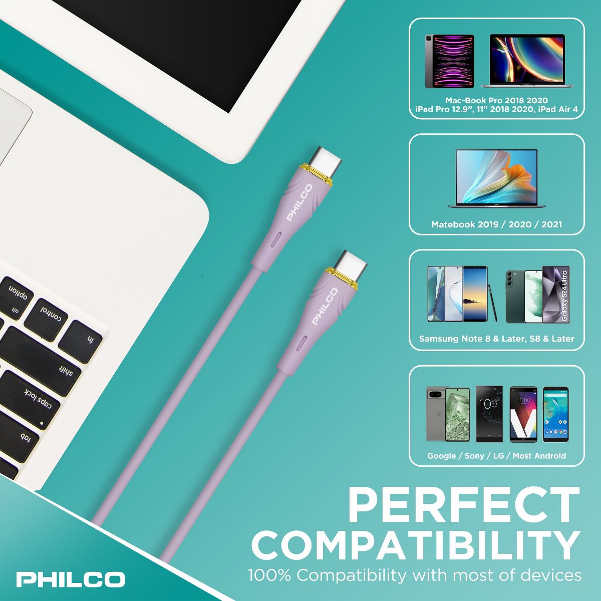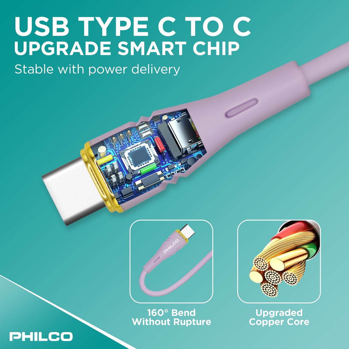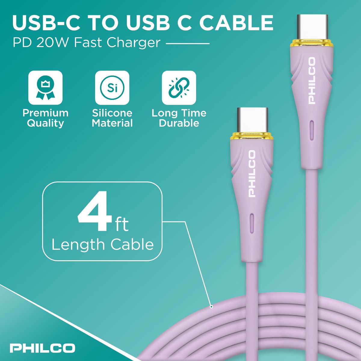 PHILCO USB C to C Cable, 4Ft Length, 20W Fast Charging, High-Speed Data Transfer, Durable and Tangle-Free Black