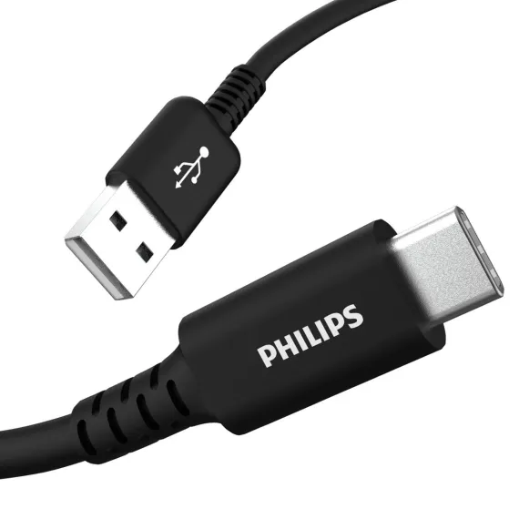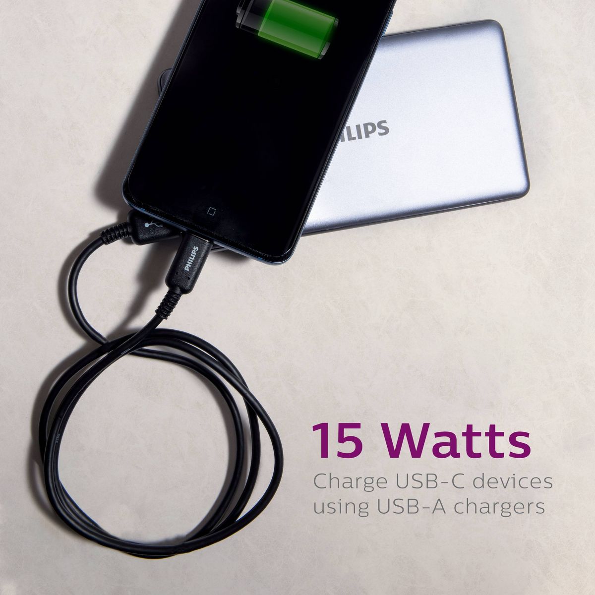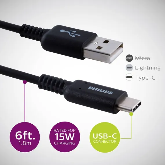Philips 6' Cable, USB-A to USB-C 15W Charge - Black: Connection Male-To-Male