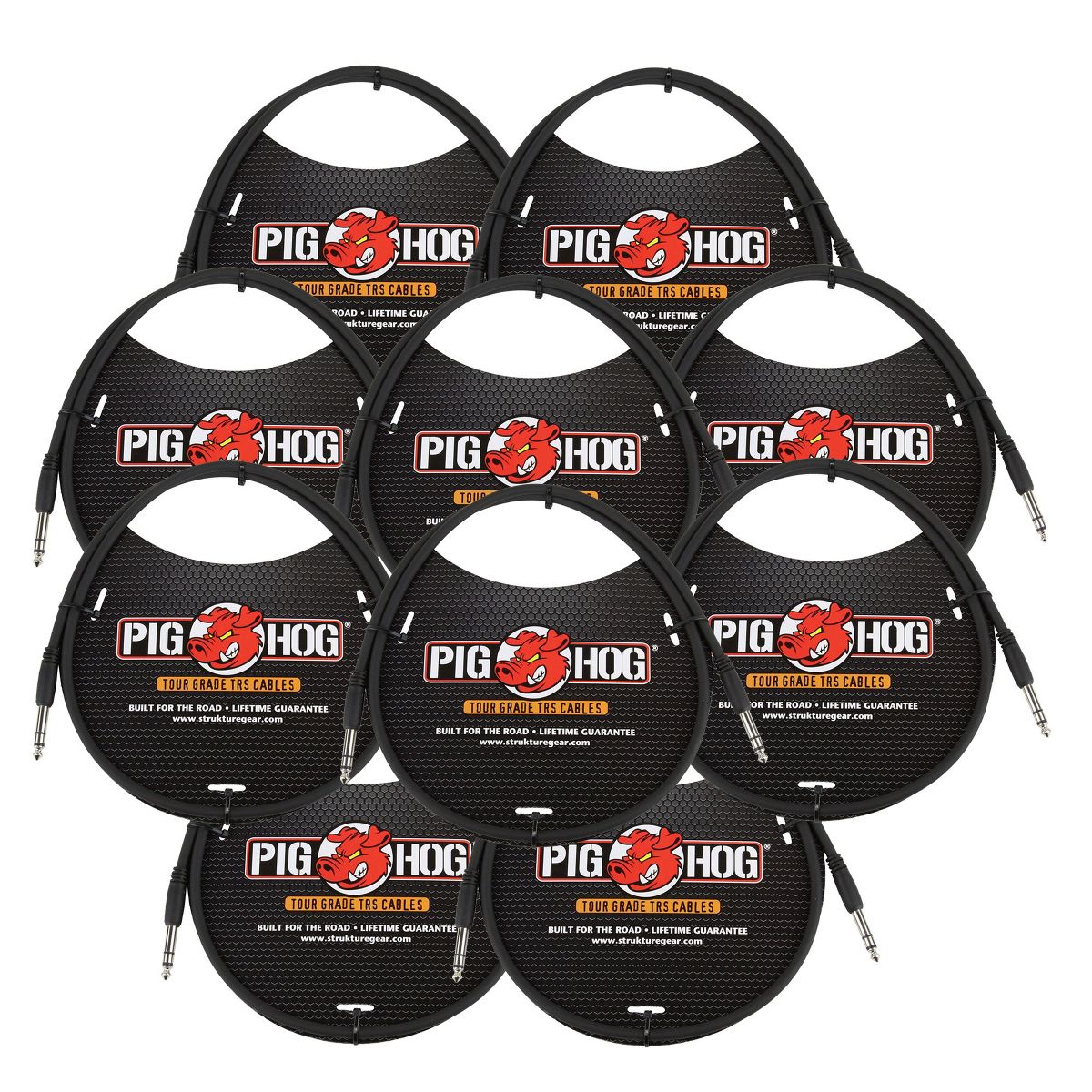 Pig Hog 3ft 1/4" TRS - 1/4" TRS Cable - 10 Units