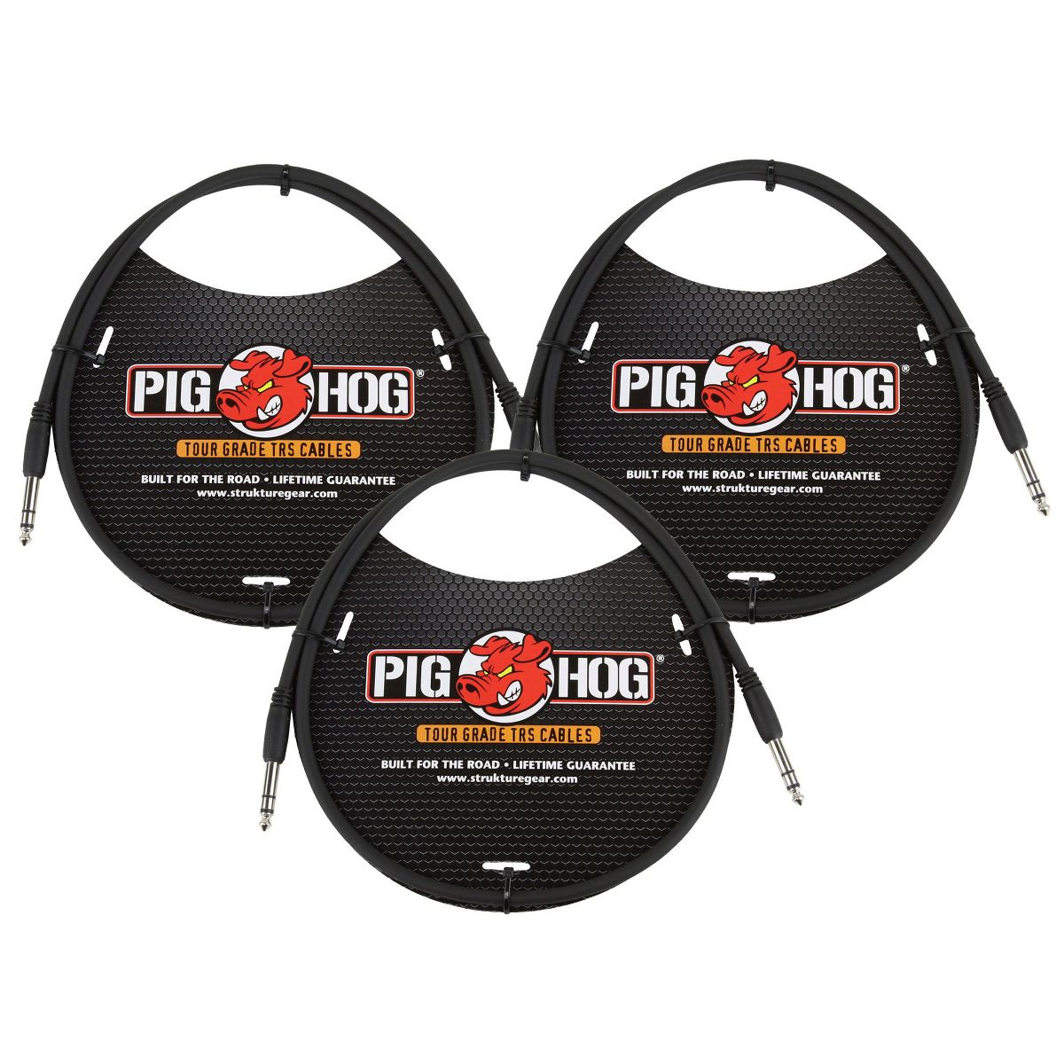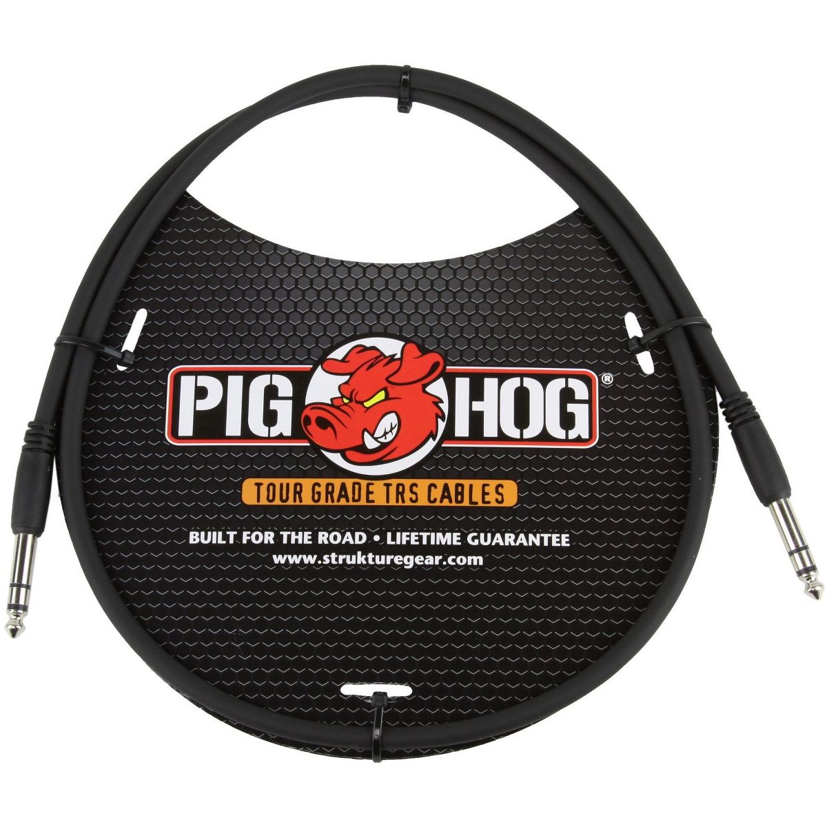 Pig Hog 3ft 1/4" TRS - 1/4" TRS CablePig Hog cables are precisely overbuilt to stand up to the most grueling tour conditions imaginable, and are designed to provide the highest quality performance with outstanding value. We understand your cables need to sound great and perform reliably, night after night, without costing you an arm or a leg! Thats why we use an extra-thick, yet supple 8mm jacket that resists kinking or tangling. Our proprietary conductor technology and robust shielding is designed to ensure your sound is crystal clear, without noise or interference, every time. Each cable is hand tested before shipment, and we back up our quality with a lifetime warranty so you can be sure your Pig Hog Cables will be an integral part of your rig for years to come.