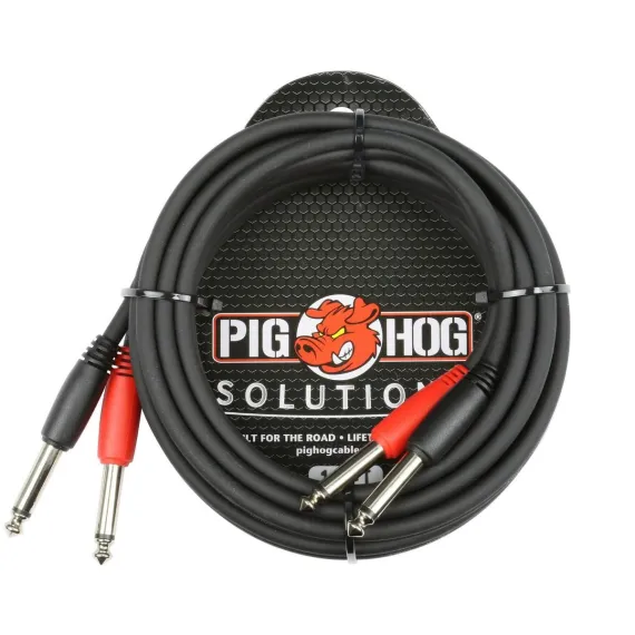 The Pig Hog Solutions line features an expanding selection of adapters and cables designed to solve common interfacing problems in the studio and on stage. Each cable is manufactured to our high quality standards to ensure transparent reproduction of the source audio without any coloration or distortion. Pig Hog dual cables feature heavy duty molded connectors with built in strain relief, color coded for easy identification of Left and Right Channels, and an extra thick tour grade PVC sleeve.