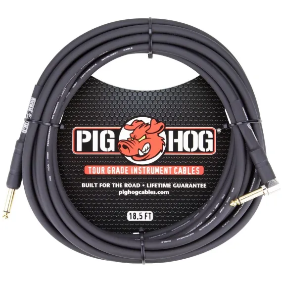 Pig Hog Tour Grade 18.5ft 1/4"-1/4" Cables - Straight to Right Angle - 5 Units