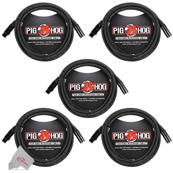 This Bundle from Teds Electronics Includes: Pig Hog 8mm XLR Microphone Cable Male to Female 10 Ft Fully Balanced Premium Mic Cable - 5 Units