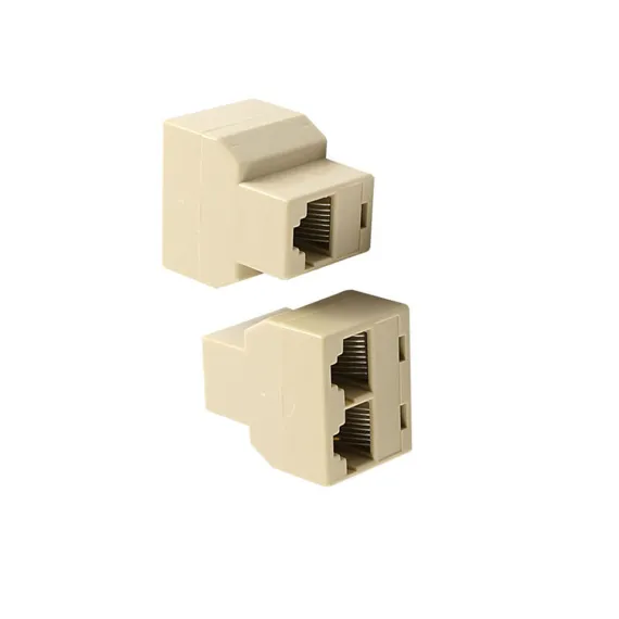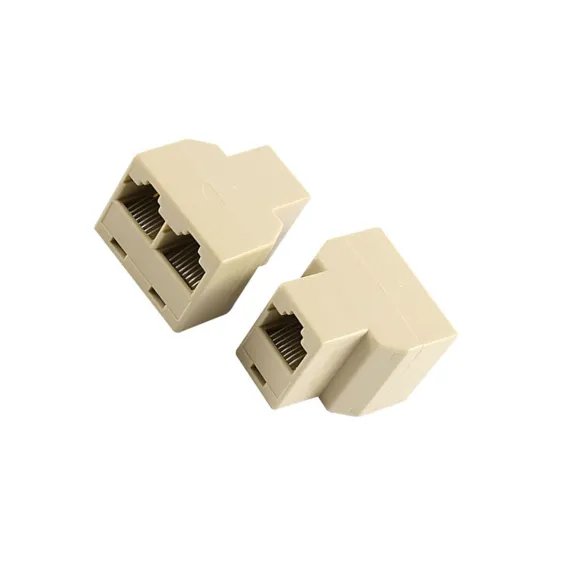 Plastic Shell RJ45 8P8C Phone Cable Female to 2 Female Telephone Extension Connector Line Adapter Convertors Jack Splitter 10pcs. RJ-45 Jack Splitter connects two devices to one phone Jack. Connect two phone devices to one outlet. Perfect for connecting a phone and fax machine to the same plug. Compact dimensions of 33 x 30 x 23mm.