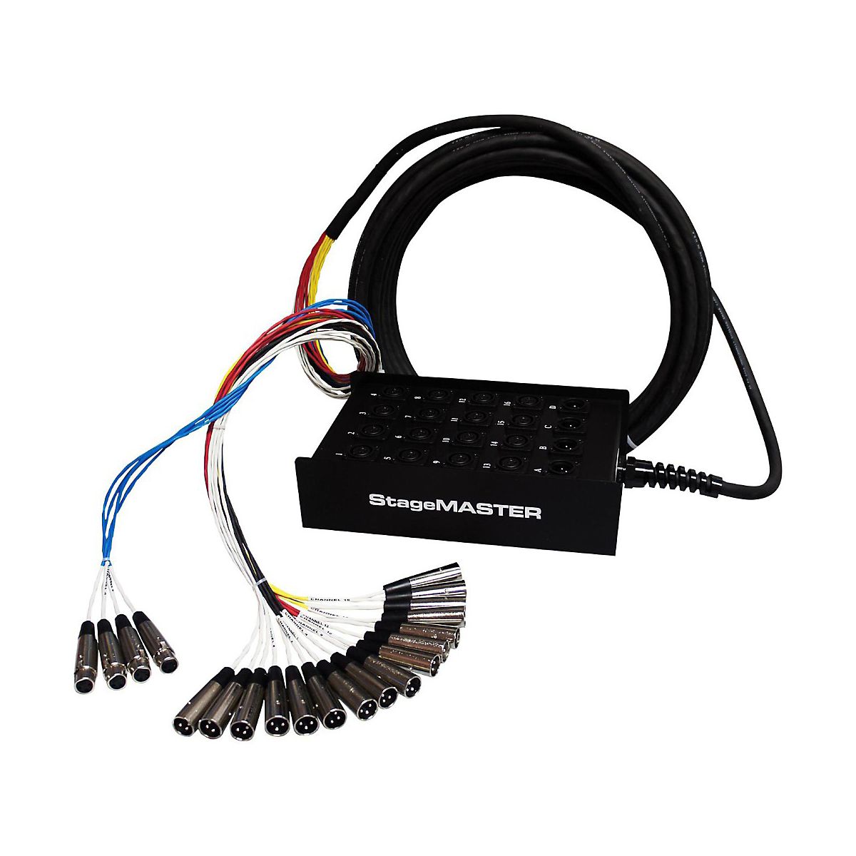 ProCo StageMASTER SMC Series 20-channel snakes are designed and built to provide the greatest value possible. StageMASTER stage snakes are not outsourced. They are manufactured in ProCo's own facilities, by their employees, according to the strictest quality standards. ProCo takes pride in providing with a system that can rely on at a price will appreciate.Each StageMASTER stage snake stagebox is constructed of a steel connector panel chassis and a heavy-duty steel U-channel enclosure designed for excellent shielding and protection of connectors. The stagebox is coated with a durable black powdercoat finish with white silkscreened channel identification numbers. Box connectors are rugged Neutrik "D" Series nylon XLR female input panel connectors and returns are "D" Series XLR male connectors.The stagebox is wired with SN Multipair Audio Cable to a fanout with Rean (a Neutrik brand) Male XLR connectors and Rean (a Neutrik brand) Female XLR connectors.The cable is secured to the stagebox with a rugged nylon strain relief. The individual channels of the Fanout are protected with color-coded irradiated polyolefin shrink-tubing for long flex-life and easy channel identification.