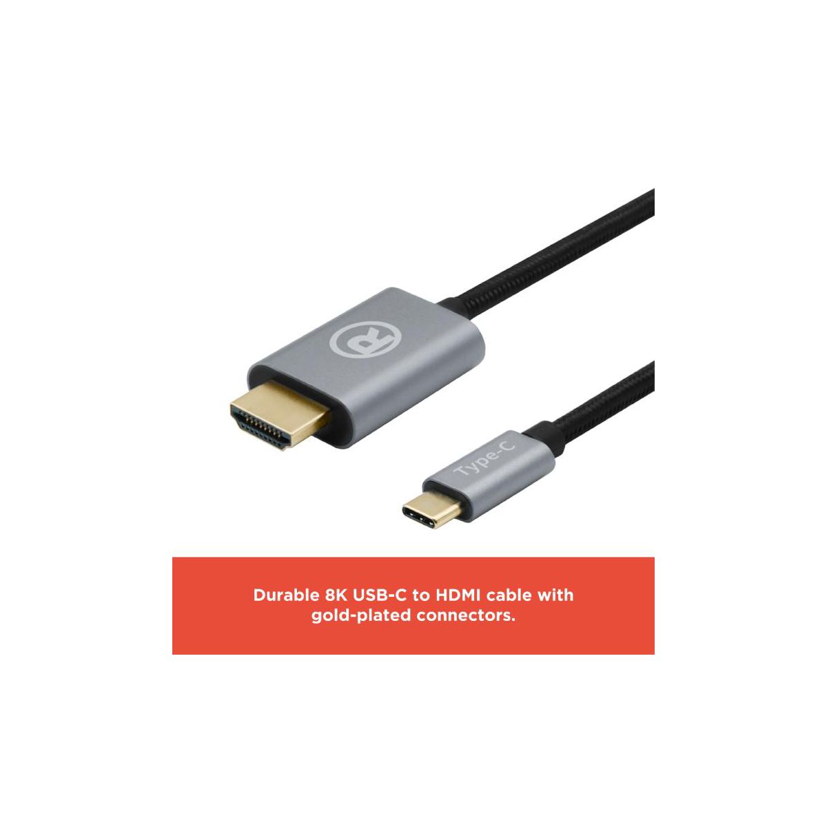 RadioShack 8K USB-C to HDMI Braided Cable, High-Speed Video Transfer, Durable Nylon Design, Plug-and-Play, 8K Resolution