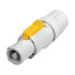The powerCON is a locking 3 conductor equipment AC connector with contacts for line, neutral and pre-mating ground contact. It replaces appliance couplers wherever a very rugged solution in combination with a locking device is needed in order to guarantee a safe power connection.Attention: The powerCON is a connector without breaking capacity, i.e. the powerCON should not be connected or disconnected under load or live!