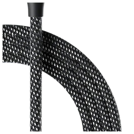 The 3.3-ft. Raycon® Magic Spin Charge and Sync Cable is the ultimate high-speed charging cable that prevents fraying. The 180° design prevents typical wear and connection issues. Plus, it is more comfortable playing games, using apps in portrait mode, and watching videos while charging. Charge your phone 8x faster than regular charging cables so you can give your device the power it deserves. A hard-wearing nylon exterior and a bulletproof fiber core combine to create a cord that can withstand up to 20,000+ bends. It's the toughest cable you’ll own. Period. It's made with braided nylon used by the US army, making it nearly impossible to tear. The built-in intelligent chip regulates the power delivery traveling to your device to ensure no overheating or overcharging so you can sleep worry-free while your device is charging. This cable features a double 180° rotation capability at the connectors, which prevents damage and fraying. This innovative design enhances the durability and longevity of the cable, making it ideal for regular use in various settings. The cable offers high-speed power delivery, supporting up to 100 watts for USB-C® to USB-C® connections, which is ideal for fast charging laptops and other high-power devices. For USB-C® to iOS™ connections, it supports up to 30 watts, ensuring quick and efficient charging for Apple® devices.