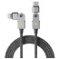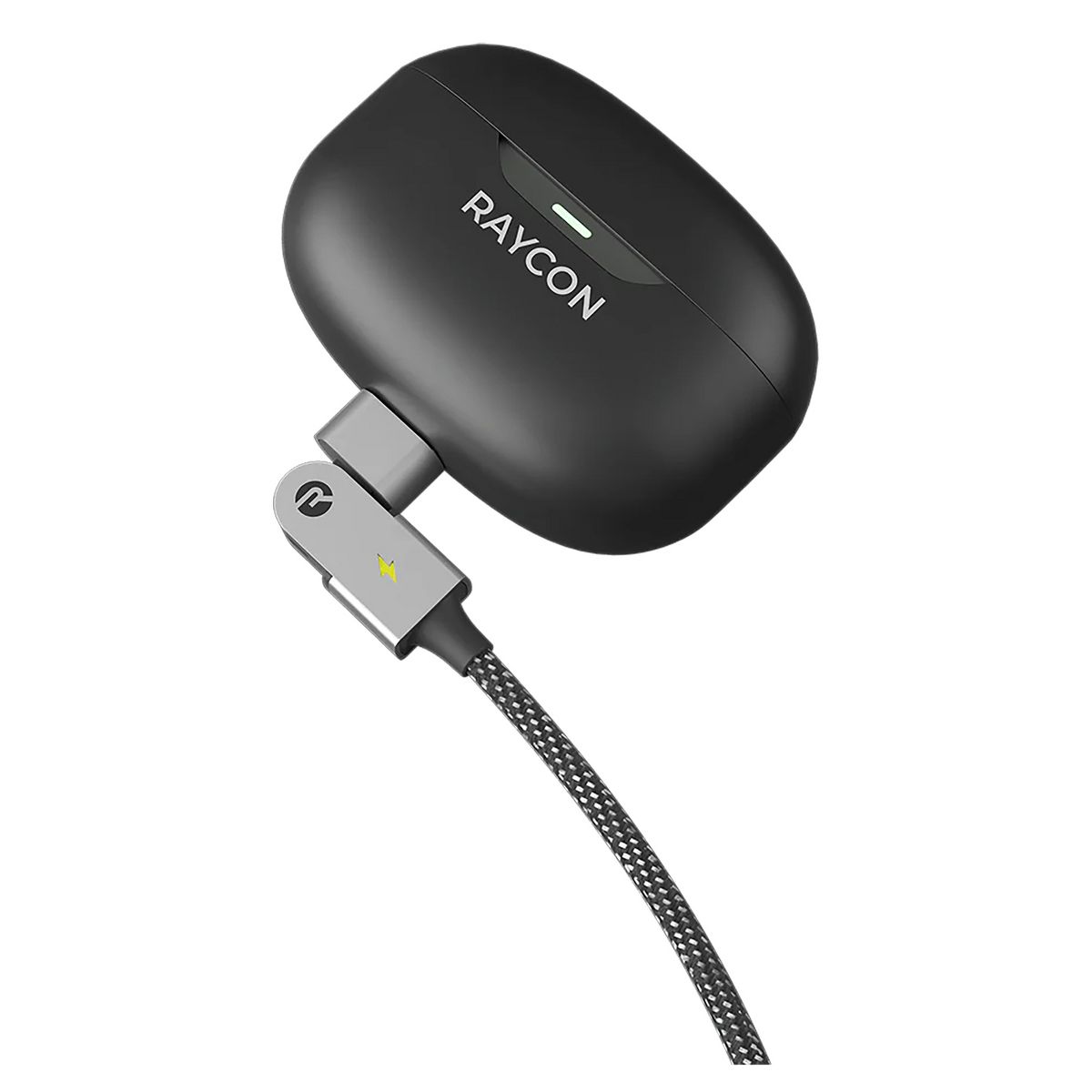 The 6.6-ft. Raycon® Magic Spin Pro Charge and Sync Cable is the ultimate high-speed charging cable that prevents fraying. The 180° design prevents typical wear and connection issues. Plus, it is more comfortable playing games, using apps in portrait mode, and watching videos while charging. Charge your phone 8x faster than regular charging cables. Give your device the power it deserves. A hard-wearing nylon exterior and a bulletproof fiber core combine to create a cord that can withstand up to 20,000+ bends. It's the toughest cable you’ll own. Period. It's made with braided nylon used by the US army, making it nearly impossible to tear. The built-in intelligent chip regulates the power delivery traveling to your device to ensure no overheating or overcharging. Sleep worry-free while your device is charging. This cable features a double 180° rotation capability at the connectors, which prevents damage and fraying. This innovative design enhances the durability and longevity of the cable, making it ideal for regular use in various settings. The cable offers high-speed power delivery, supporting up to 100 watts for USB-C® to USB-C® connections, which is ideal for fast charging laptops and other high-power devices. For USB-C® to iOS™ connections, it supports up to 30 watts, ensuring quick and efficient charging for Apple® devices.