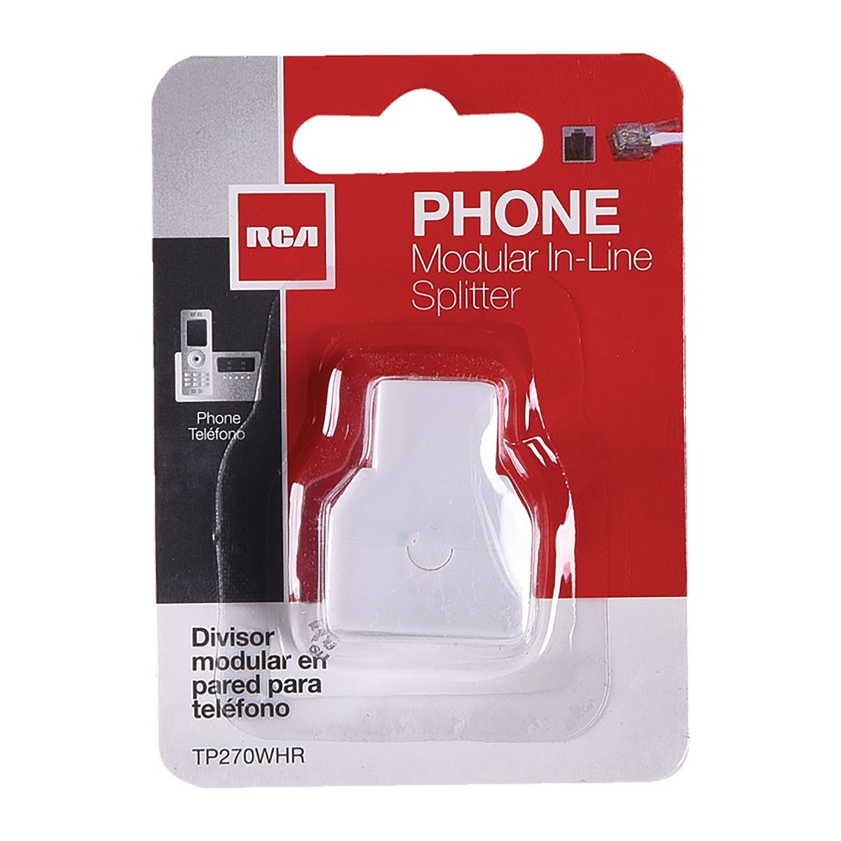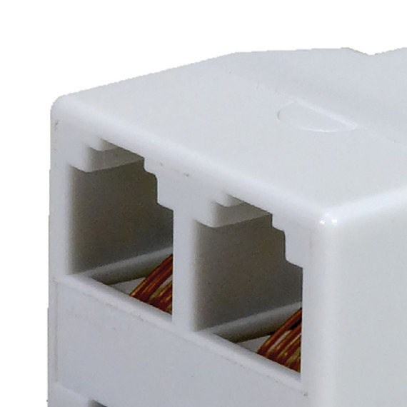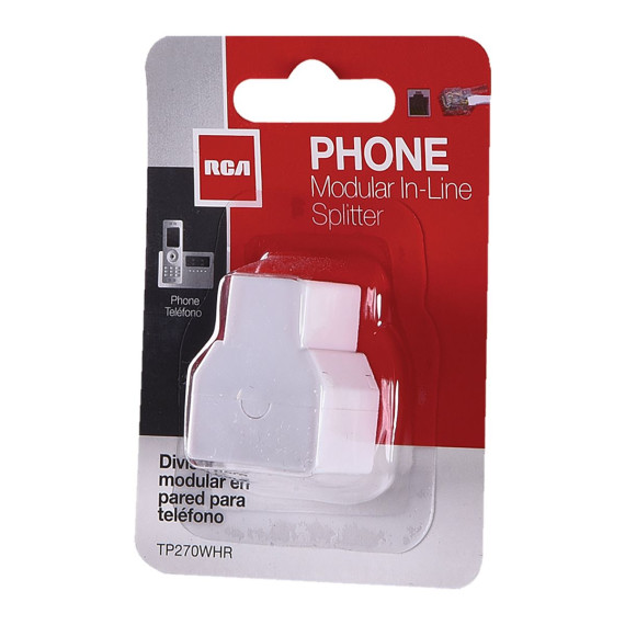 The RCA TP270WHR Modular In-Line Phone Splitter extends the reach of a phone cord and converts the jack into 2 jacks. For example, now you can stop switching cords every time you need to send a fax. With the splitter, you can plug a fax machine and telephone into the same line at the same time. Installation is quick and easy - simply plug the line cord from your phone outlet into the single-jack side of the adapter, then plug the telephone cords from your devices into the 2 adapter jacks. Use this for indoor installations only.