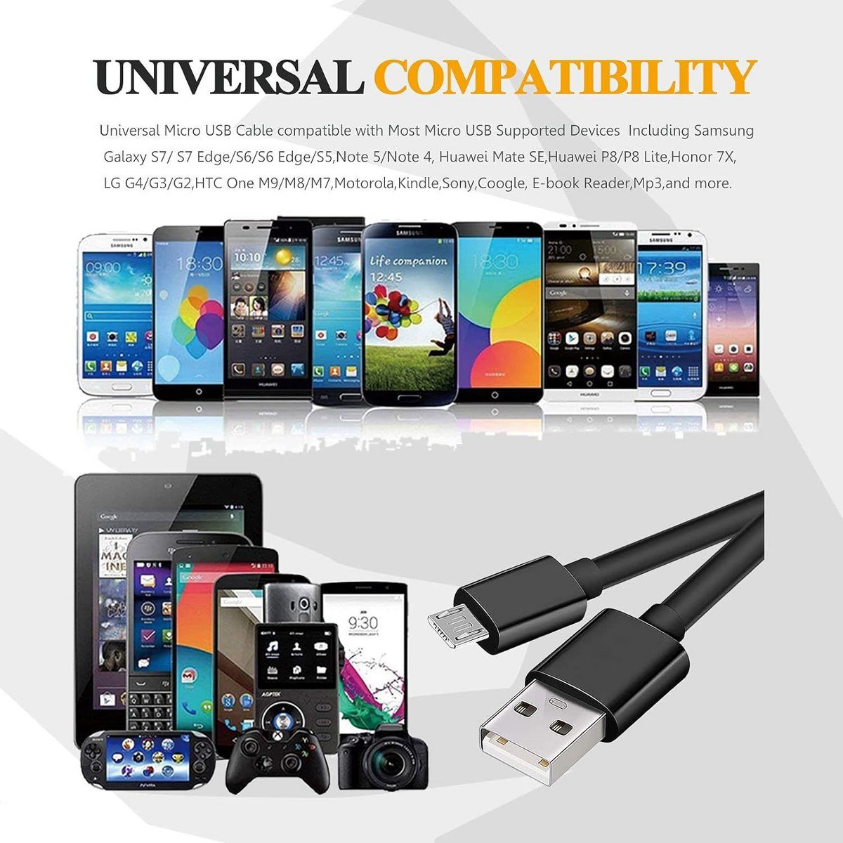 Samsung Micro USB 56" Charging Cable For Tablets & Phones Micro USB Devices Only - Bulk Packaging - Black