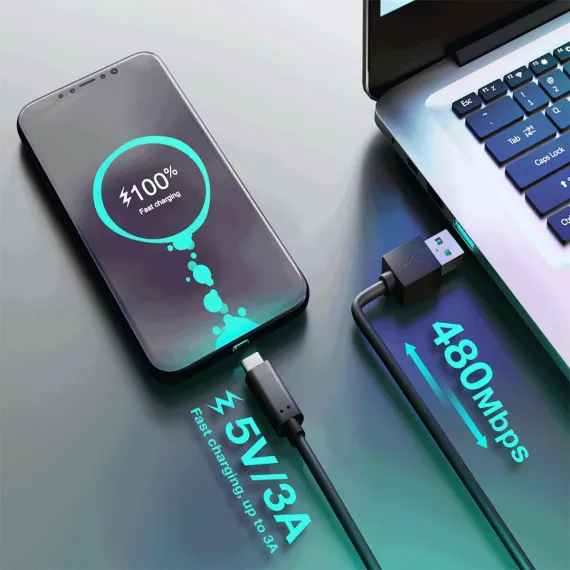 Sanoxy 2M USB-C to A Cable: Fast Charge & Sync for Your Devices (480Mbps, 3A)