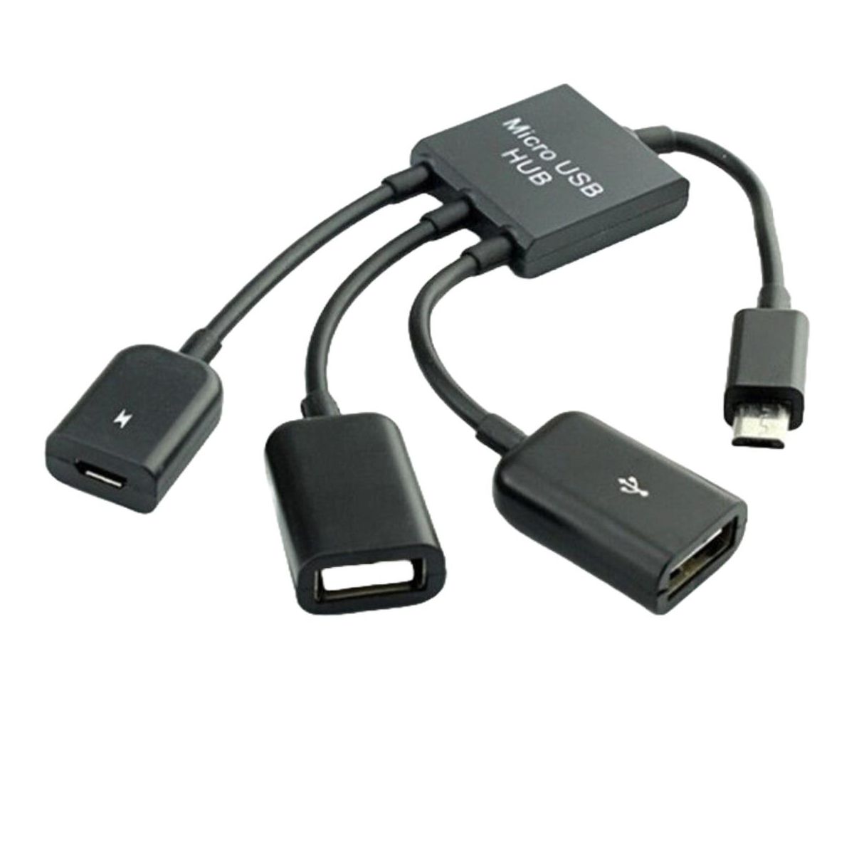 This multifunctional USB OTG host hub adapter cable is compatible with all tablets and cell phones with OTG function, It features three USB ports for connecting a keyboard, mouse, card reader, and other devices, as well as a power USB port for connecting the original charger to supply power to these devices. When OTG mode and charging mode are enabled simultaneously, the switch should be placed to "Charge". This allows you to share your U disk content while charging the phone. Micro-USB Power can charge your tablet and smartphone simultaneously.