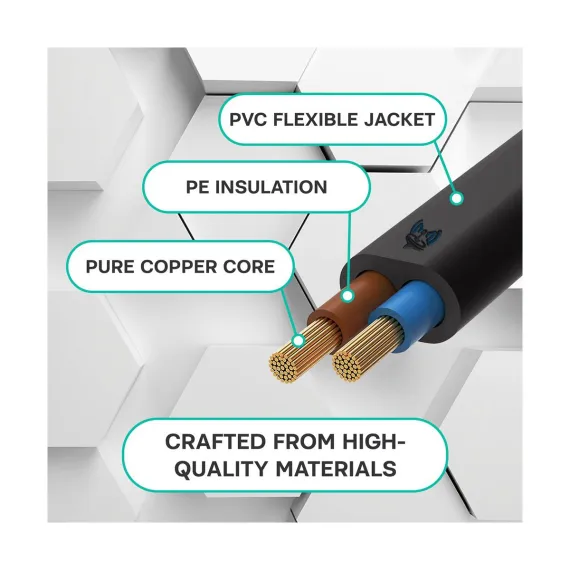 SatelliteSale 18AWG 2-Prong to Square/Round Connector AC Universal Replacement Power Cable Universal Wire PVC Black Cord 15 feet
