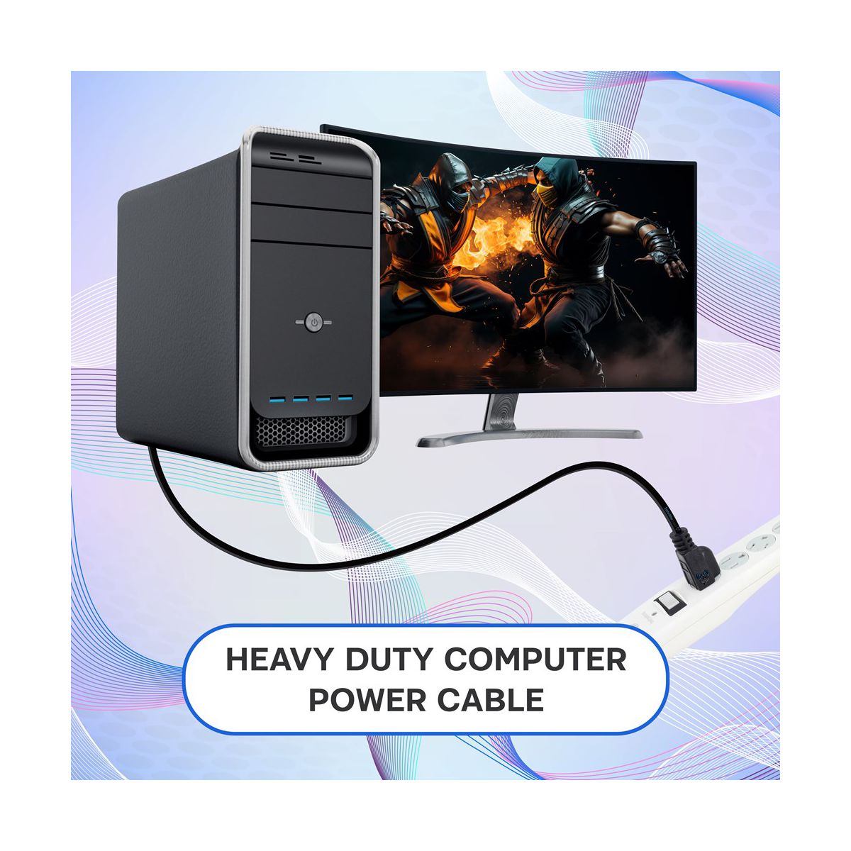 SatelliteSale Universal Heavy Duty Computer Power Cable Male NEMA 5-15P to Female IEC C5 Universal Wire Black PVC Cord 6 feet