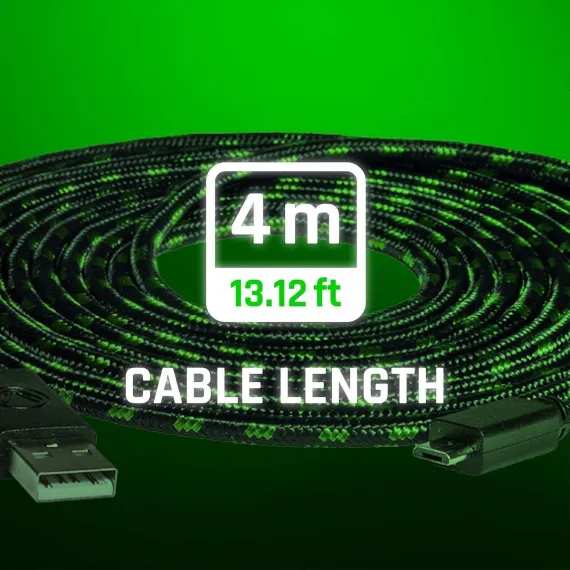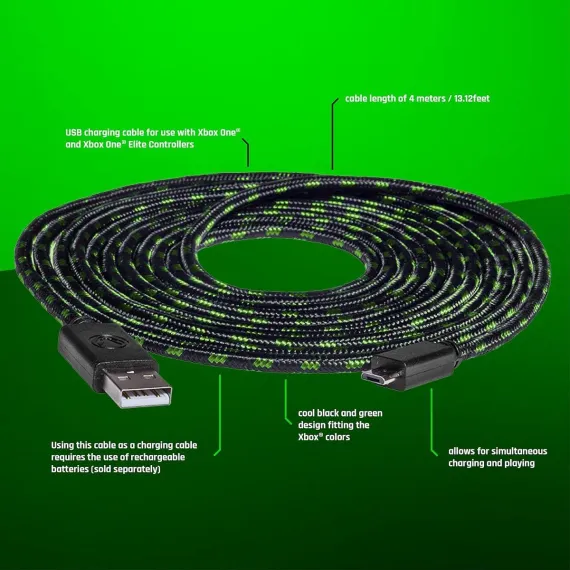 The USB Charge:Cable Pro from snakebyte is made for fans of Xbox One. The four meters (13.12 feet) long cable matches the color scheme of the console and enables charging and playing at the same time (rechargeable batteries sold separately).