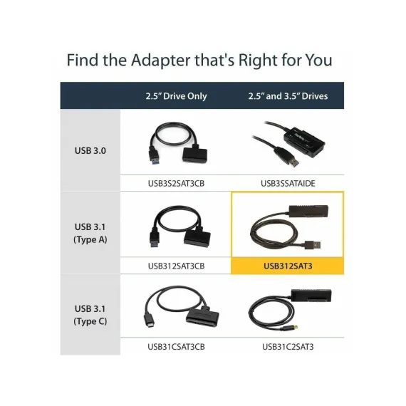 StarTech.com USB 3.1 Adapter Cable for 2.5in and 3.5in SATA Drives - USB312SAT3