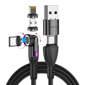 STATIK 10' 360-Degree Pro Universal Magnetic Charging Cable - Black: USB-C, Lightning, Micro USB, Braided Design