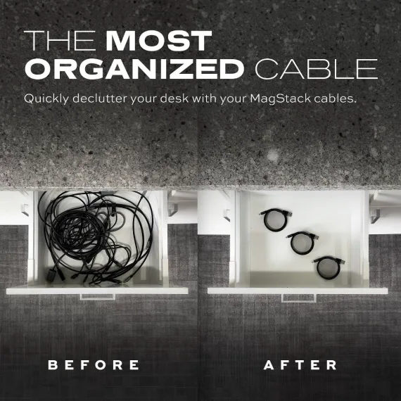 Say goodbye to tangled cables forever! The MagStack™ line utilizes innovative magnetic technology to keep your cables neatly organized. Its ultra-durable braided nylon construction resists wear and tear and prevents fraying. With swift transfer speeds and compatibility with both Apple and Android devices, this exceptional cable offers a complete charging and data solution.