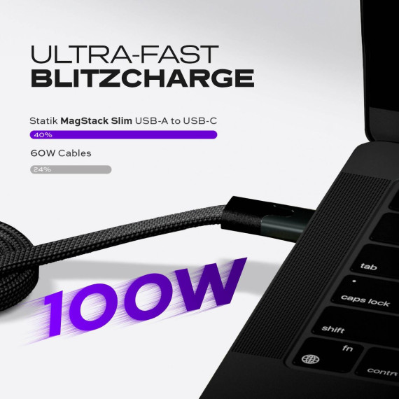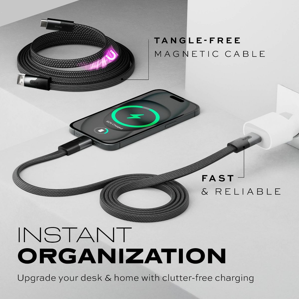 STATIK 3.3' MagStack Slim USB-A to USB-C Tangle Free Magnetic Charging Cable: 480 Mbps Data Transfer, Braided Cord