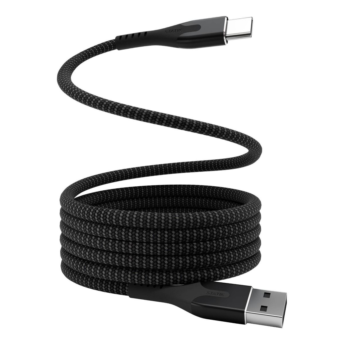 STATIK 6.6' MagStack USB-A to USB-C Tangle Free Magnetic Charging Cable - Black: Braided, 480 Mbps Data Transfer