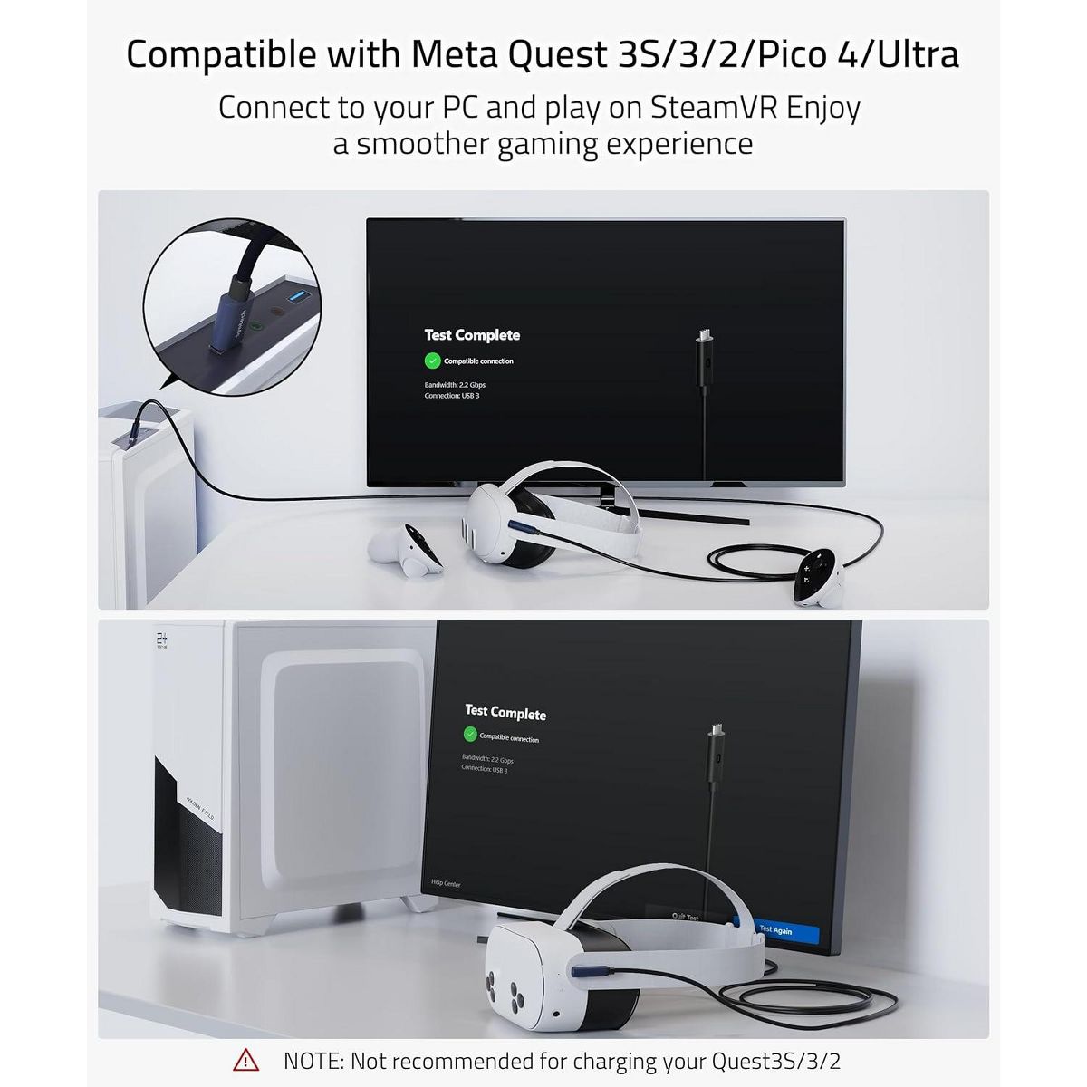 Syntech VR Link Cable 10 FT Compatible with Oculus/Meta Quest 3/Meta Quest 3S, Quest2/Pro/Pico 4/Ultra Accessories and PC/SteamVR, High Speed PC Data
