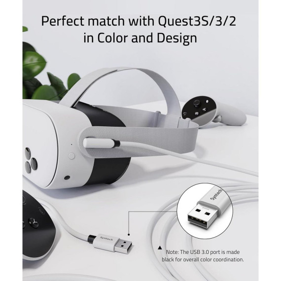 Syntech VR Link Cable 10 FT Compatible with Oculus/Meta Quest 3/Meta Quest 3S, Quest2/Pro/Pico 4/Ultra Accessories and PC/SteamVR, High Speed PC Data