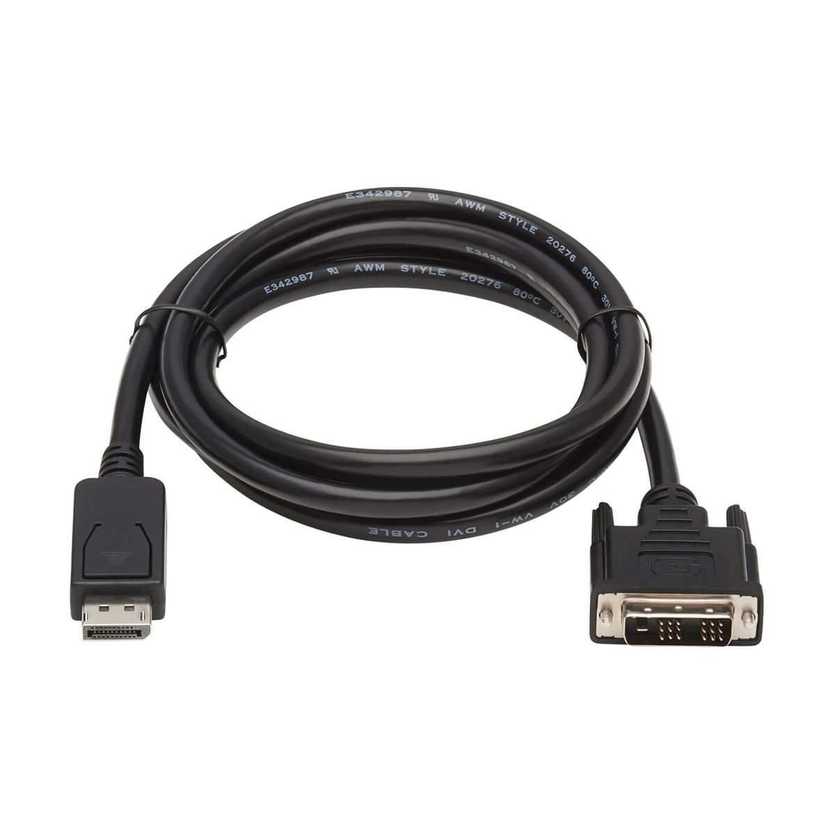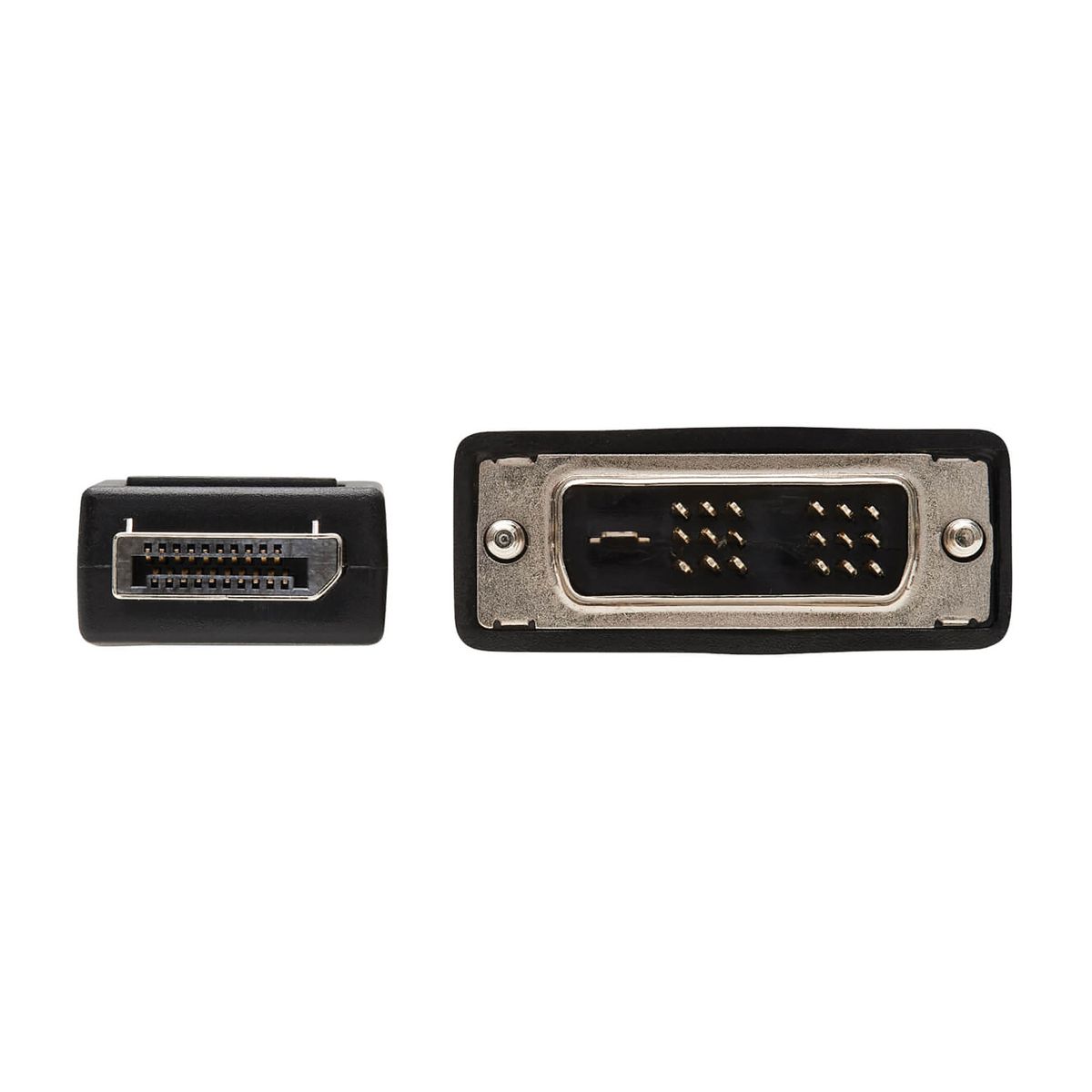 The Male to Male DisplayPort™ to DVI-D Cable Adapter from Tripp Lite® by Eaton® allows you to connect a computer with a DisplayPort™ connection to a high-definition television or monitor with a DVI input. Digital video signals are passed through with Full HD 1080p video resolution. The fully molded ends are designed to last a long time. The 6-ft. adapter is a passive adapter that requires the host computer to have a DP++ dual-mode connector, which allows HDMI® and DVI signals to be passed through. Check your computer's documentation for compatibility.