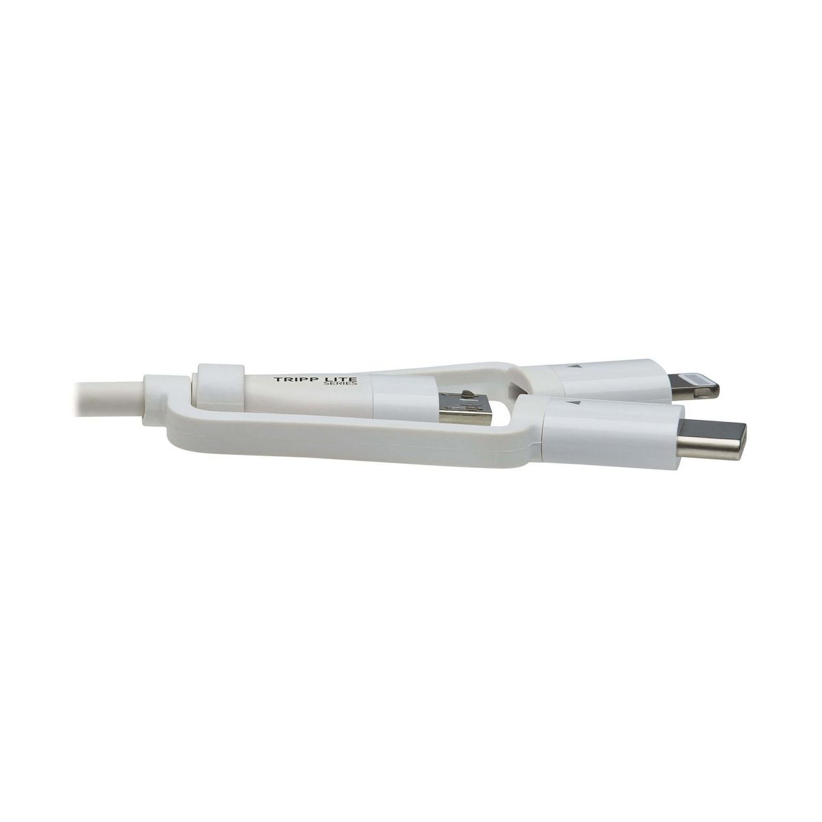 Tripp Lite Safe-IT™ Universal USB-A to Lightning®, USB Micro-B, and USB-C® Charge and Sync Antibacterial Cable, White, 4 Ft.