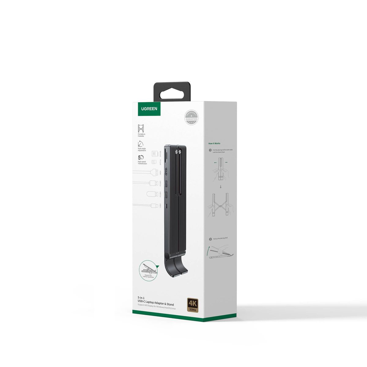 UGREEN Portable & Foldable Laptop Adapter/Stand with Multi-angel Adjustments features a 5-in-1 USB-C 5 Gbps High-Speed Transmission that can support HD Display for Windows/MacOS/Linux. It also features 2 USB 3.0 A ports, a HDMI port, and a SD/TF card reader to expand your capabilities.