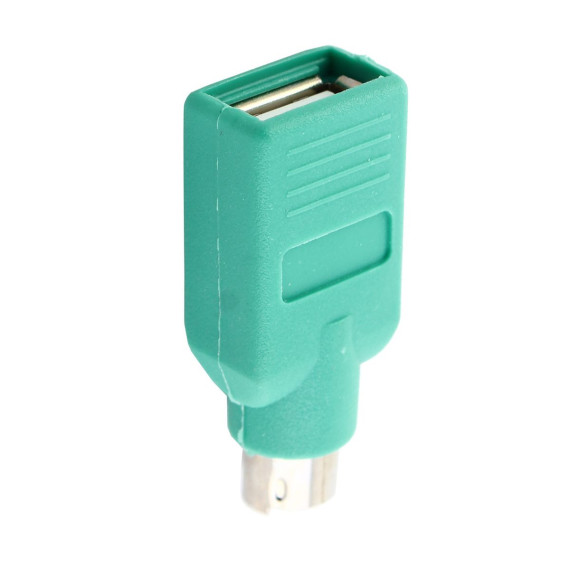 This PS/2 to USB keyboard adapter allows a male PS/2 connector to a USB connector, specifically designed for keyboards. Easily connect a PS/2 keyboard to a computer or device with a USB port. The adapter is small and lightweight, making it convenient for on-the-go use. It is made from durable plastic and metal, ensuring long-lasting performance. The green color and compact size make it easy to identify and use. Ideal for users who need to connect older keyboards to modern devices without PS/2 ports.
