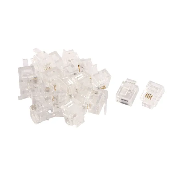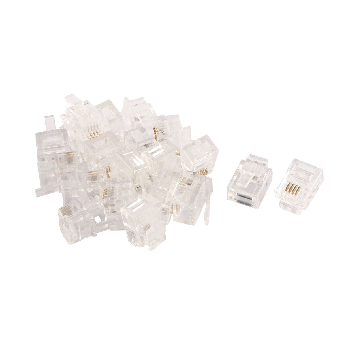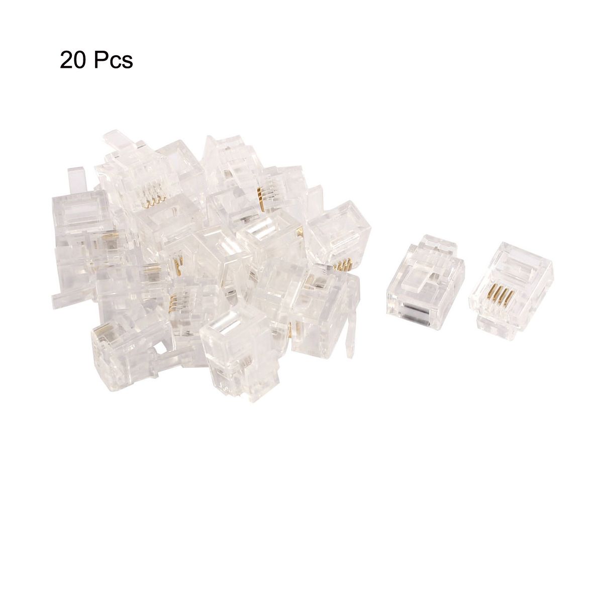 Unique Bargains 20pcs Clear Housing RJ11 6P4C Modular Telephone Cable Line Adapter Connector