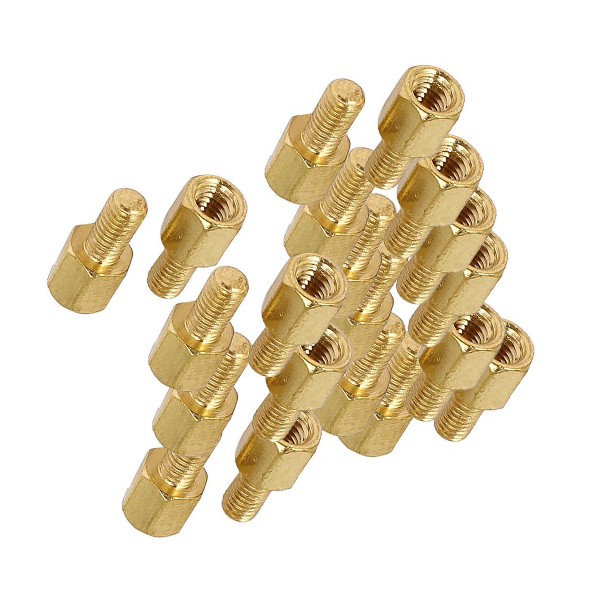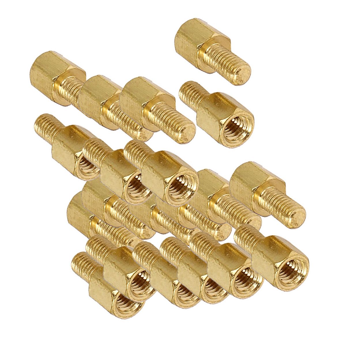 Unique Bargains M3 x 5mm + 6mm Motherboard Hex Standoffs Male to Female Thread Brass 20 Pcs