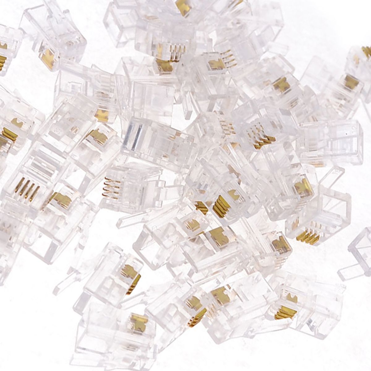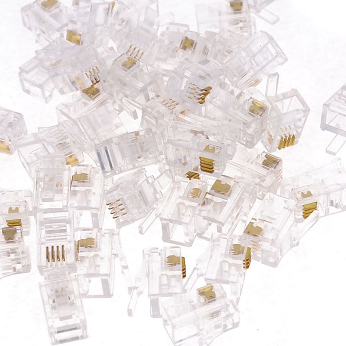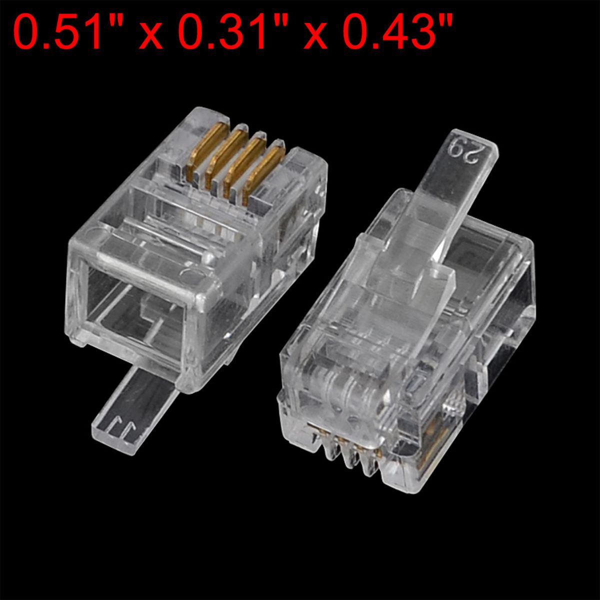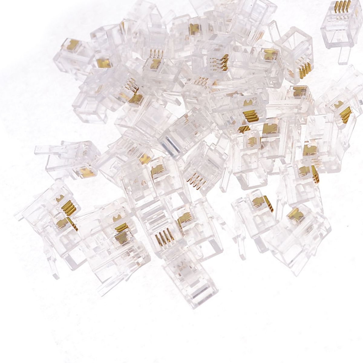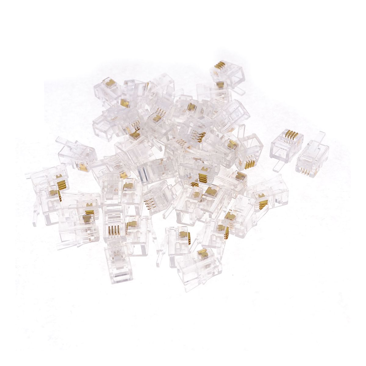 Unique Bargains Plastic Clear Standard Connection RJ9 Telephone Connector 50 Pcs