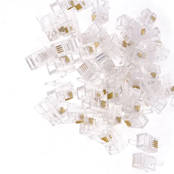 These modular plugs are crafted from materials for durability and long life, meeting RJ9 4P4C male telephone connector standards. They ensure stable, interference-free audio transmission and are suitable for various telephone handset cords. The clear plastic shell and copper pins allow for fast and accurate data transfer. These plugs are easy to install, requiring no special skills or tools, making them ideal for home, office, or business environments.
