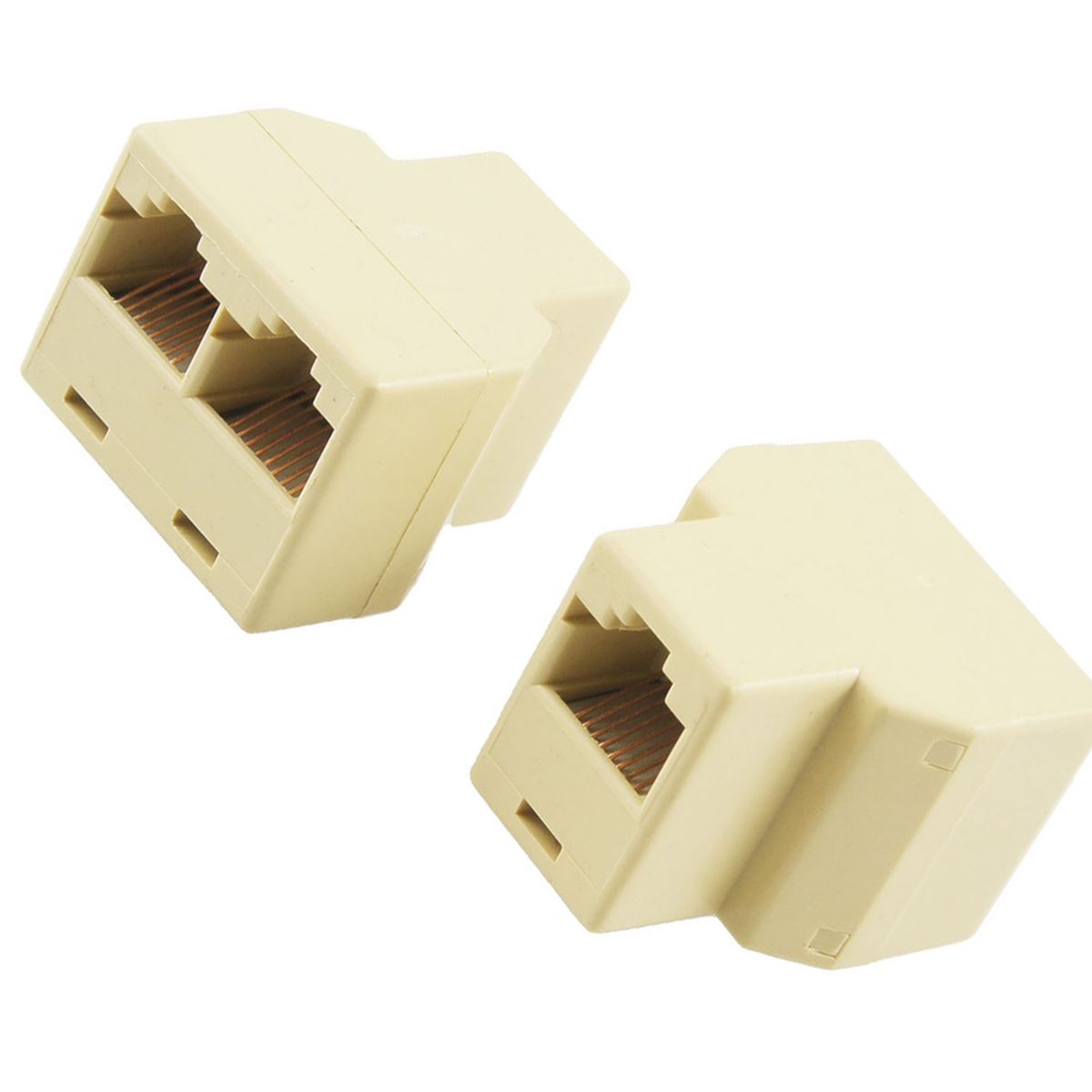 Unique Bargains Plastic Compact Design RJ45 Splitter Connector Khaki 2 Pcs