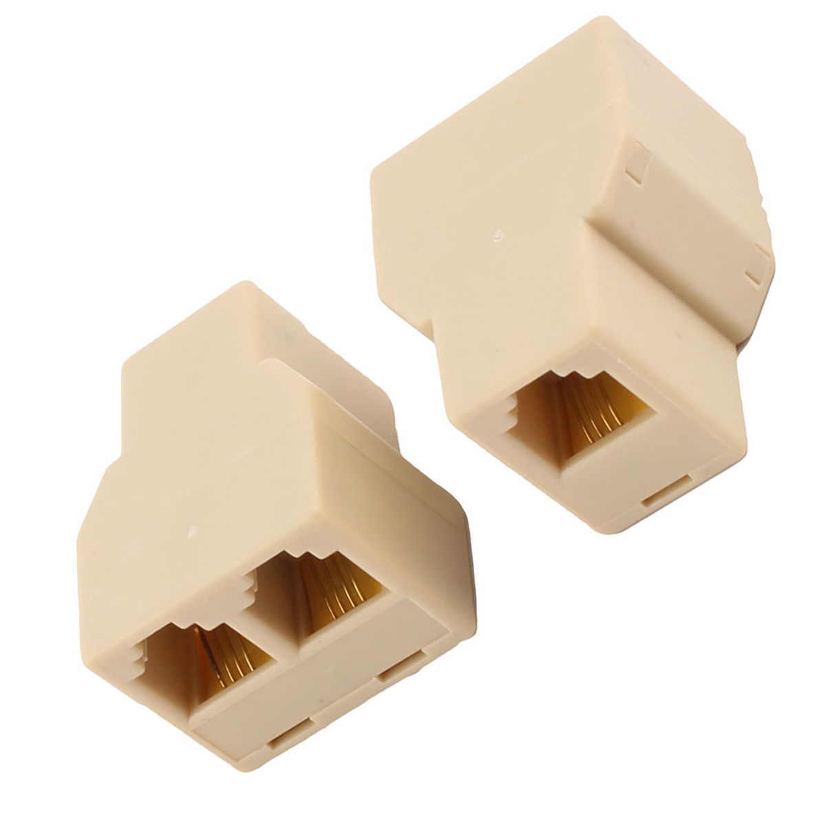 Unique Bargains Plastic Durable Compact Design Telephone Line RJ11 Splitters Beige 2 Pcs